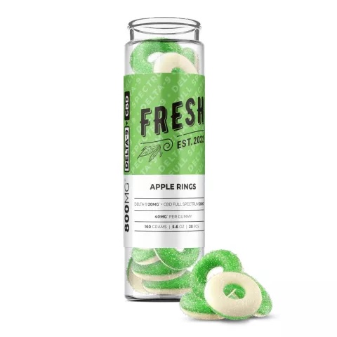 Treat yourself to Fresh’s Apple Rings Gummies and experience the delightful combination of Delta-9, CBD, and luscious apple flavours. Elevate your senses and enjoy the unique benefits of this exceptional blend in a tasty and convenient form.