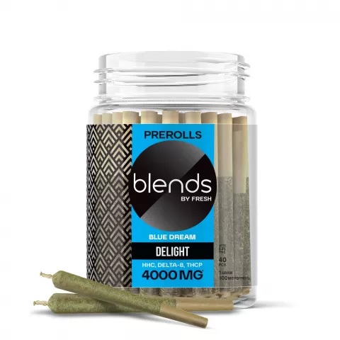 Experience Delight, Blue Dream strain blended Pre-Rolls with 4000mg of HHC, Delta 8, and more, a new way to enjoy cannabinoids with Blends by Fresh. With an all-natural cannabinoid blend you can go higher than you’ve ever dreamed. You’ll love Blends by Fresh.